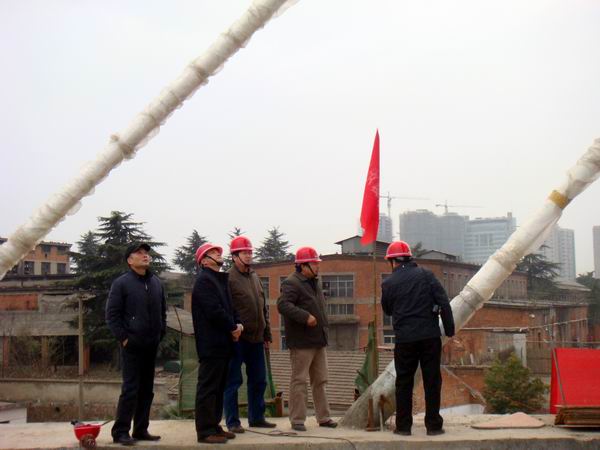 戴總一行參觀了大橋南岸主橋施工現(xiàn)場。在聽取了項目部江仲明經(jīng)理對前期工作和當(dāng)前施工進展情況的匯報后,戴總對我部工作給予了高度評價,同時提出了更高的要求,希望我部繼續(xù)努力,再上新臺階。隨后,戴總一行還登上了主橋橋面,實地察看了正在緊張進行的主橋前支點掛藍施工,親切慰問了冒著嚴寒戰(zhàn)斗在一線的現(xiàn)場施工工人和技術(shù)人員,并就主橋完成后如何拆除前支點掛藍提出了指導(dǎo)性的方案。