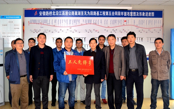 10月24日、26日,集團(tuán)公司工會(huì)主席徐曉光率考核組分別對(duì)道路分公司定長(zhǎng)05標(biāo)、北沿江05標(biāo)項(xiàng)目“工人先鋒號(hào)”創(chuàng)建工作進(jìn)行考核驗(yàn)收,并進(jìn)行了現(xiàn)場(chǎng)授牌。公司副總經(jīng)理杜海峰、工會(huì)主席楊建強(qiáng)、道路分公司黨總支副書(shū)記王秋華陪同。