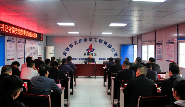 在全省上下深入學(xué)習(xí)宣傳貫徹習(xí)近平總書記考察安徽重要講話指示精神之際,按照集團(tuán)黨委統(tǒng)一部署要求,結(jié)合領(lǐng)導(dǎo)班子成員黨支部工作聯(lián)系點(diǎn)制度,10月16日下午,公司黨委副書記、總經(jīng)理錢申春深入道路分公司壽縣新橋產(chǎn)業(yè)園道路擴(kuò)展工程項(xiàng)目部宣講習(xí)近平總書記考察安徽重要講話指示精神。他強(qiáng)調(diào),要充分認(rèn)識(shí)習(xí)近平總書記考察安徽重要講話指示精神的重大意義,推動(dòng)學(xué)習(xí)宣傳貫徹工作走深走實(shí),確保習(xí)近平總書記重要講話精神在項(xiàng)目一線得到全面貫徹落實(shí),進(jìn)而轉(zhuǎn)化為推動(dòng)項(xiàng)目生產(chǎn)經(jīng)營管理的強(qiáng)大動(dòng)力和生動(dòng)實(shí)踐。